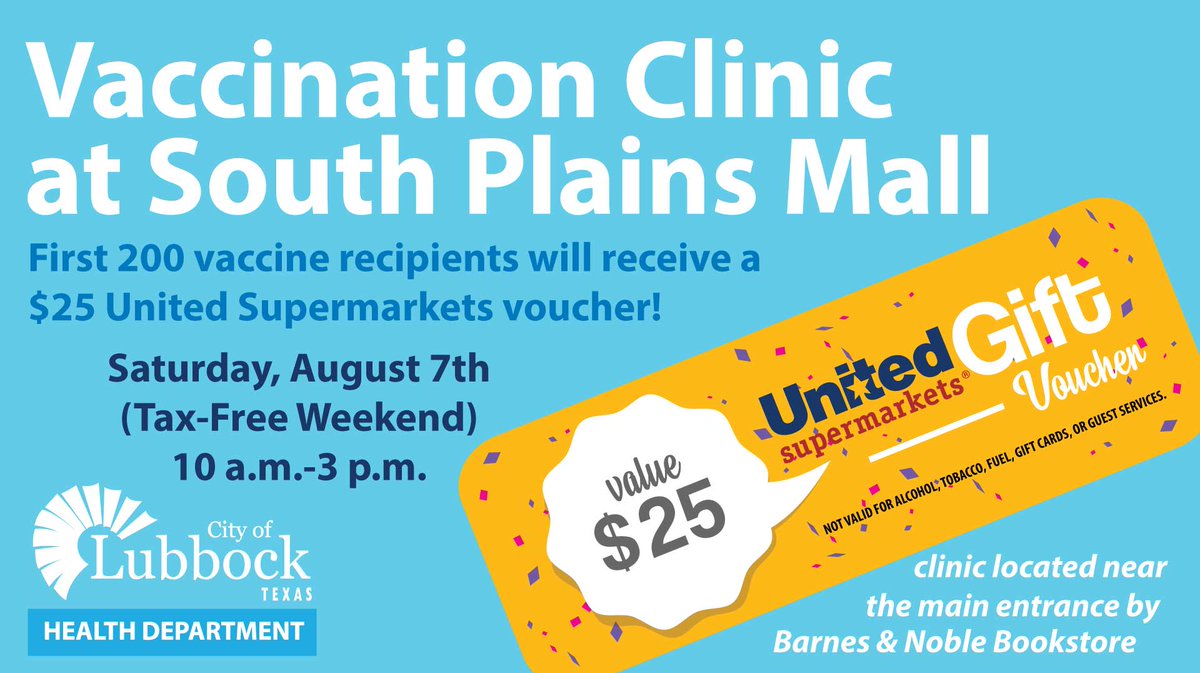 City Of Lubbock On Twitter The Public Health Dept Will Be At South Plains Mall Between 10 A M 3 P M Today Offering Free Covid 19 Vaccinations To Anybody 12 Years Old The First 200